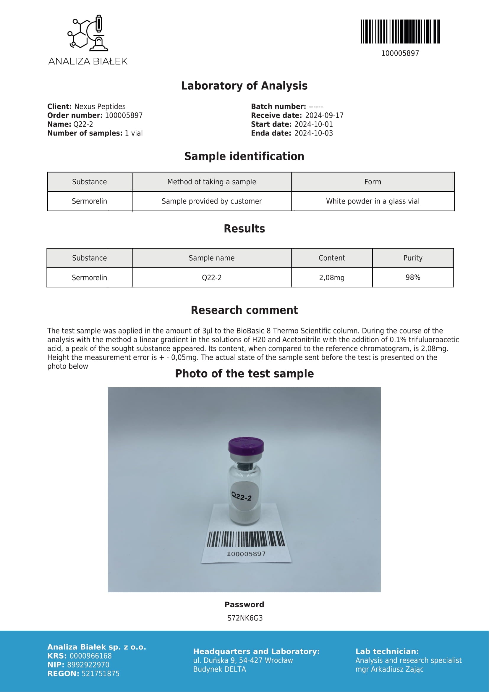 This product description is intended for research purposes only and is not for human consumption. Sermorelin is a laboratory-grade peptide designed exclusively for use in controlled environments by qualified researchers. It should only be handled by trained professionals in accordance with safety guidelines and regulations. Sermorelin is not approved for medical use, and all research should be conducted in compliance with applicable laws and ethical standards.